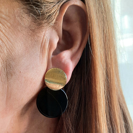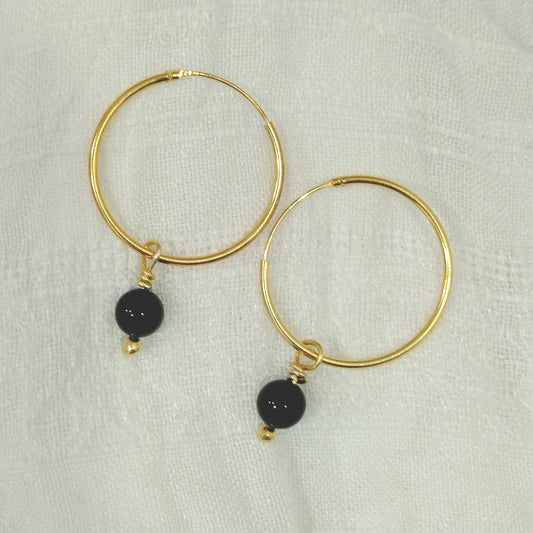 Pendientes de Ágata negra dorados