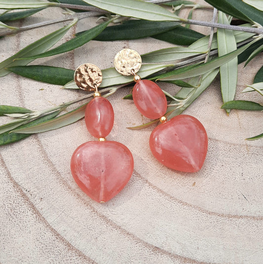 AgotadoPendientes Corazón Cuarzo fresa