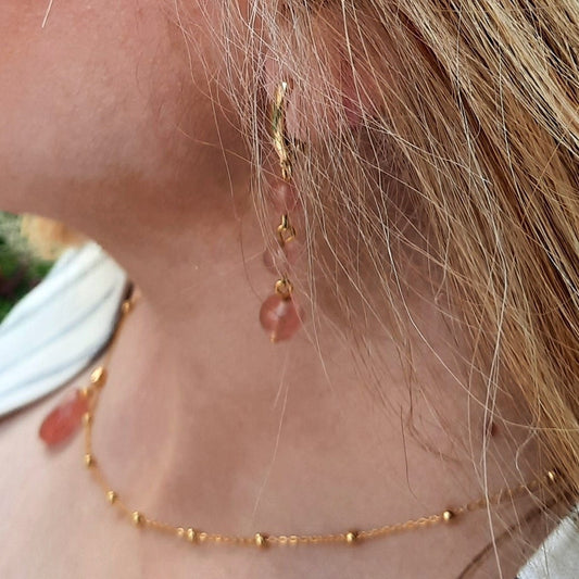 Pendientes Cuarzo Fresa largos