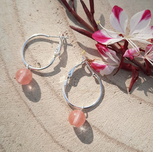 Pendientes Aro Cuarzo Fresa y Plata