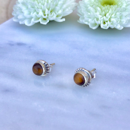 Pendientes de botón de Ojo de Tigre